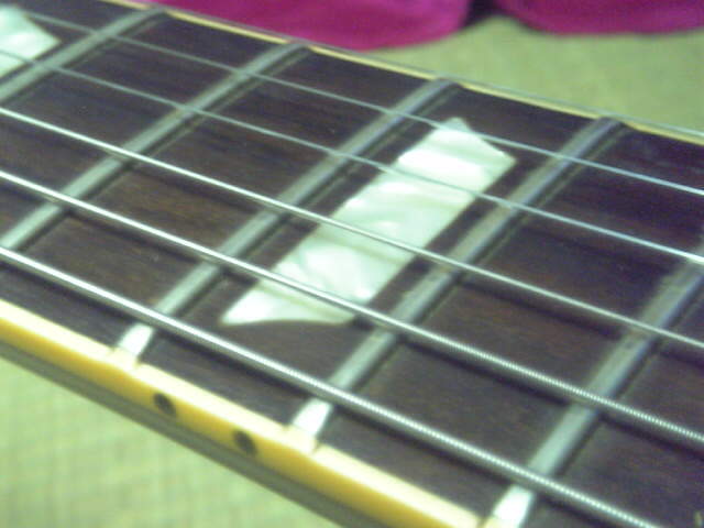 弦全部外してボディーやヘッド、ネックの裏を磨き、接点洗浄スプレーでスイッチとボリュームを噴き掛け、サビ落としで磨き、ペグ、ブリッジ、テールも磨き、弦を張ります('∀`)